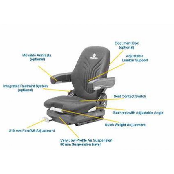 It is the first seat for forklift trucks and construction machines with a low-profile suspension, optionally available with pneumatic or mechanical suspension and quick weight adjustment. The ergonomic seat cushions and the height- and angle adjustable armrests support the body as optimal as the backrest, where the angle is adjustable from -5? to +30?.