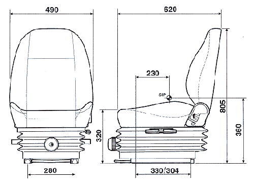 The 515 seat was designed for construction machinery with wide base mechanical suspension and provision for twin damper. It is ideally suited to wheel loader and grader application. The seat tilt and lumbar give many seat positions for operator comfort