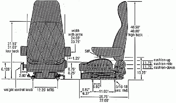 Ranger is a versatile low-profile knee-action seat that fits wherever comfort is required and in the limited vertical space of Low Cab Forwards, Hot Shots, Pick-ups, Crew Cabs and assorted equipment on driver or passenger sides. A full selection of adapters are available for easy bolt-on installation in the following vehicle: